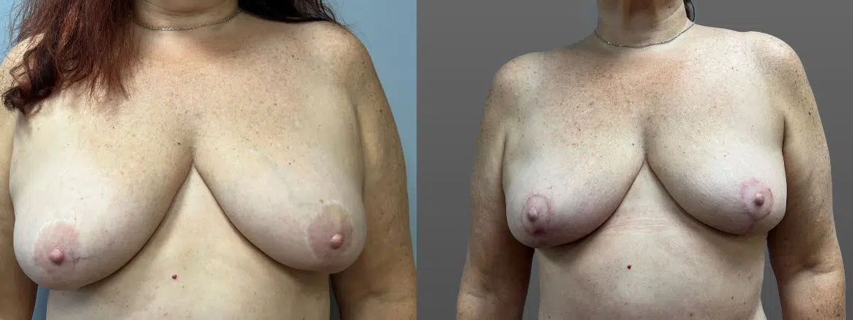 Patient is a 54 year old female who is 5โ2โ and 158 lb. She underwent a breast lift. Pictures are 3 months post-op. Scars will improve with time.
