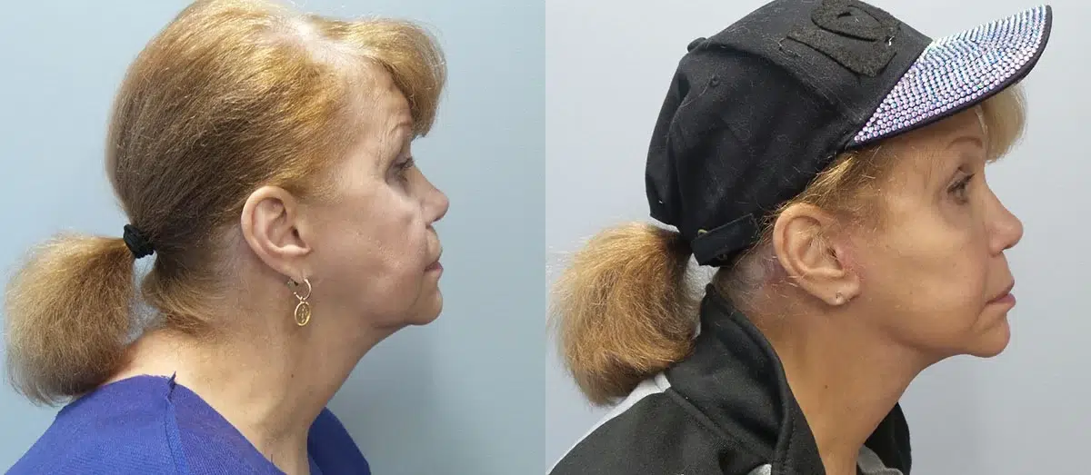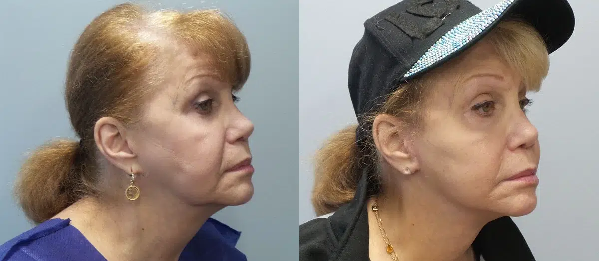 Patient is a 74 year old female who underwent a lower facelift with far grafting of the neck. Photos are 1 month post-op.