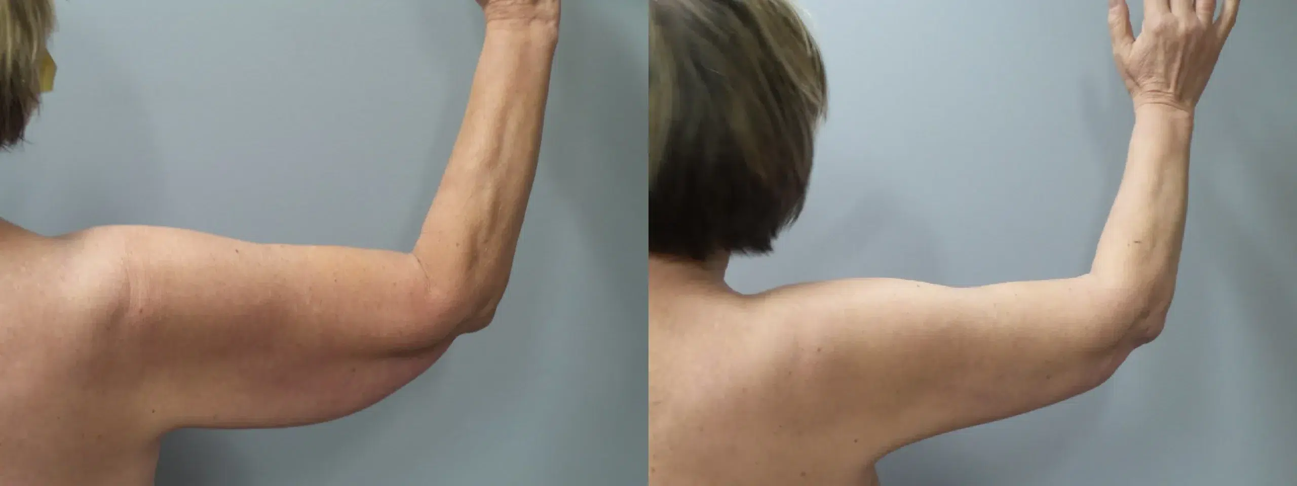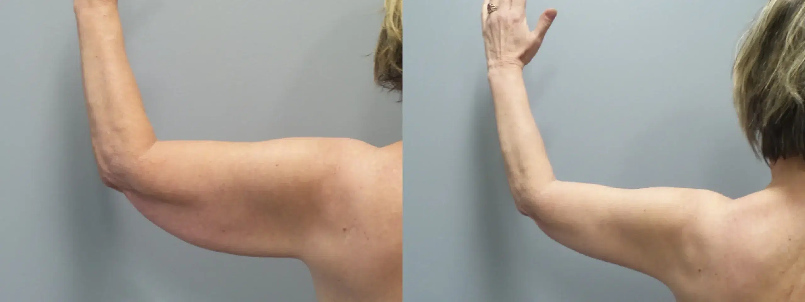 Patient is a 63 year old who underwent bilateral brachioplasty (arm lift) to decrease the excess skin and fat of her arms. Photos are 3 months post-op.