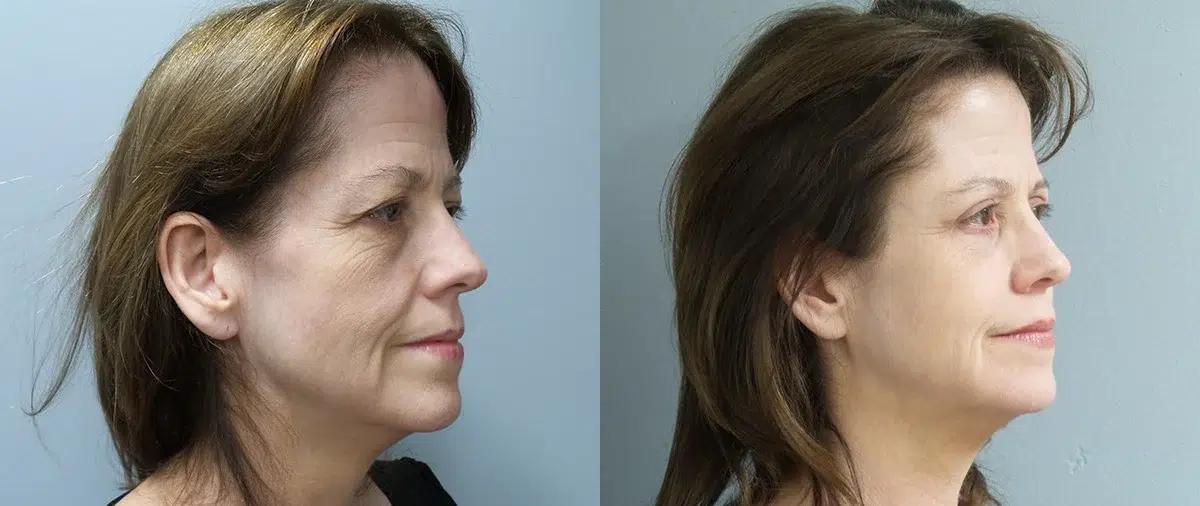 Patient is a 55 year old female who underwent an upper and lower blepharoplasty and fat grafting. Pictures are 3 months post op.