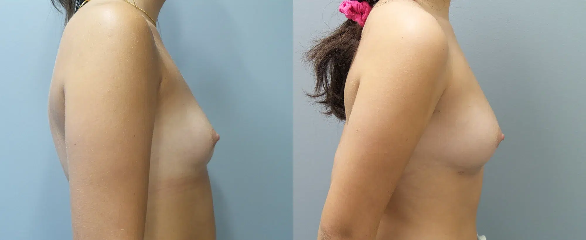 Patient is a 20 year old 5′2” female who underwent breast augmentation to her right breast with fat grafting. Pictures are 6 months post-op.