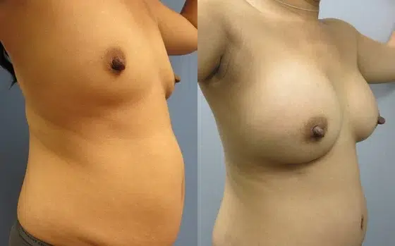 Patient is a 39 year old female who is 5’2″ 156 pounds. She underwent augmentation with 350 cc moderate plus profile implants. These are early three month pictures.
