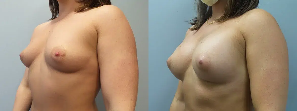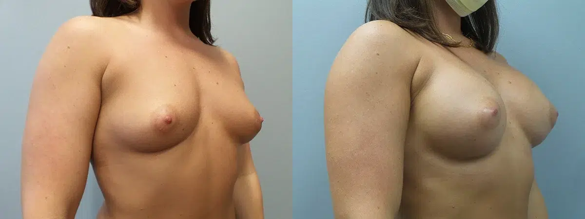 Patient is a 33 year old female who is 5’2” and 135 lbs. She underwent a bilateral breast augmentation with 300ccs. Pictures are 2 months post-op.