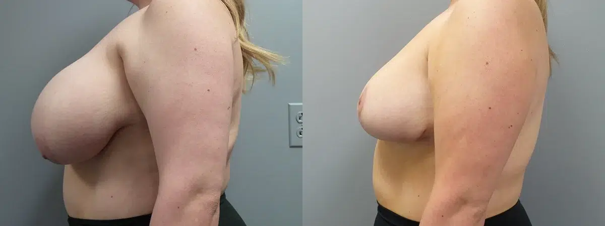 Patient is a 30 year old female who is 5’4″ and 200lbs. She underwent a breast reduction with 600 grams were removed from each side. Pictures are 4 months post-op.