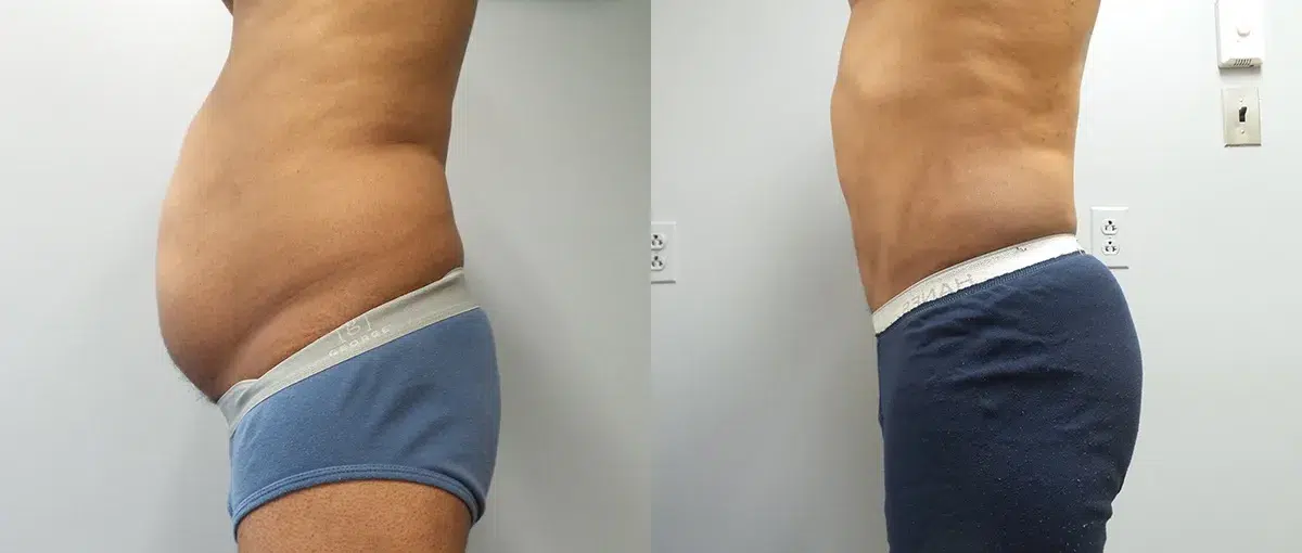 Patient is a 54-year-old male who is 5’11” and underwent liposuction of the stomach and back. Pictures are 4 months post-op.
