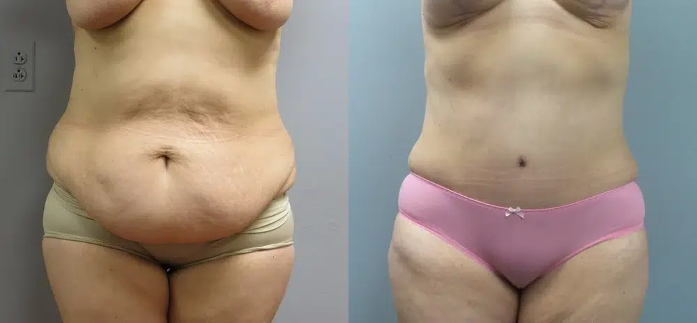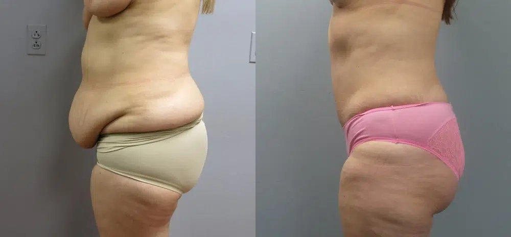 Patient is a 47 y/o female who had concerns about a large overhanging of skin and fat. She underwent abdominoplasty and umbilical hernia repair. She is 3 months post op.