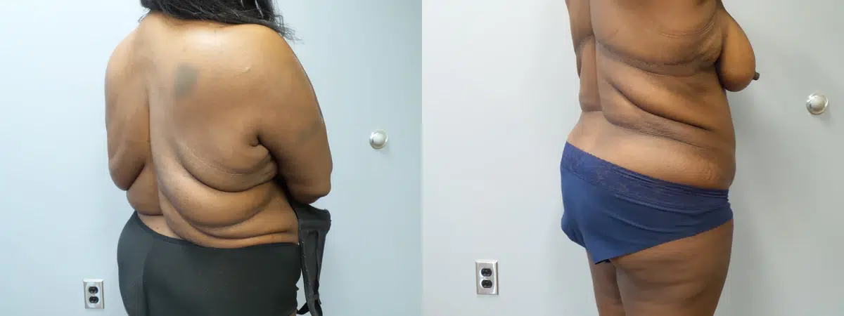 Patient is a 42 year old female who is 5’2″ and 175 lbs who underwent an abdominoplasty and a back lift. Pictures are 3 months post op.
